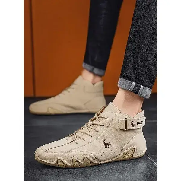 Step up your style with our Mens High-Top Sneakers. These breathable solid color flat casual shoes come in multiple colors including Black, Blue, Grey, Khaki, and more, featuring a temperature-regulating lining for all-season comfort. Perfect for casual wear, they combine durability with a sleek, high-top design accented by "DAGY" branding.